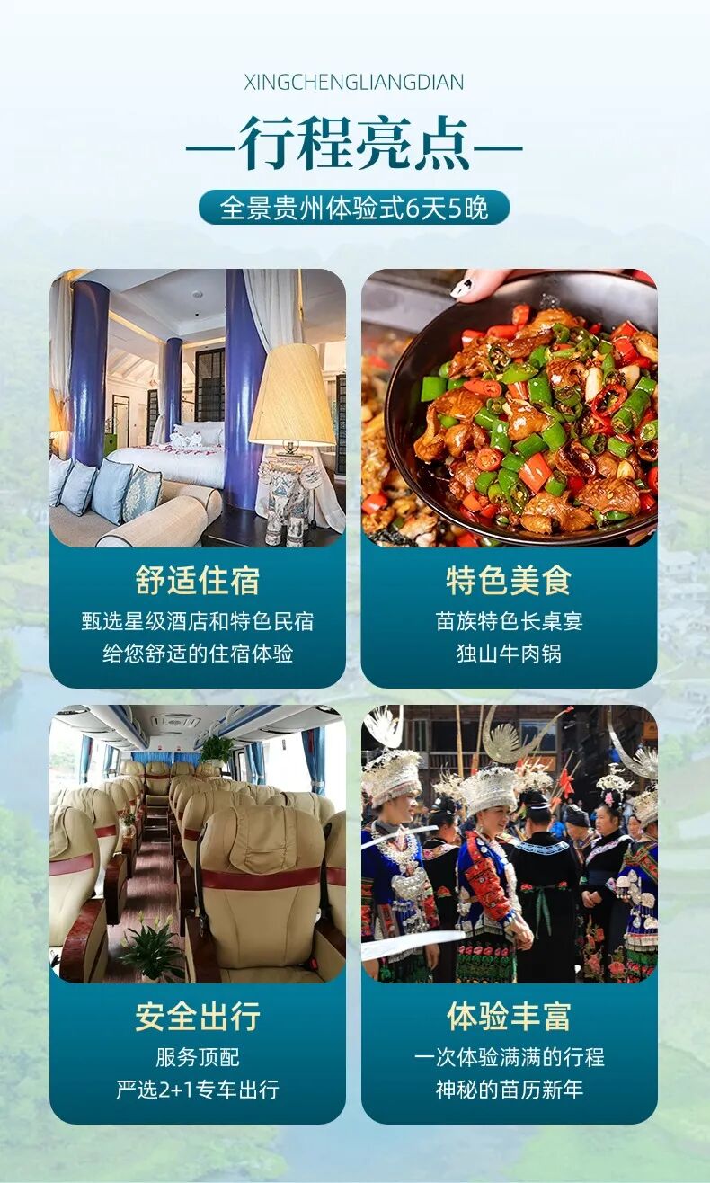 门票:含乌江寨门票+电瓶车;含西江千户苗寨门票+电瓶车;小七孔门票+电瓶车;朗德门票+电瓶车;黄果树门票+电瓶车