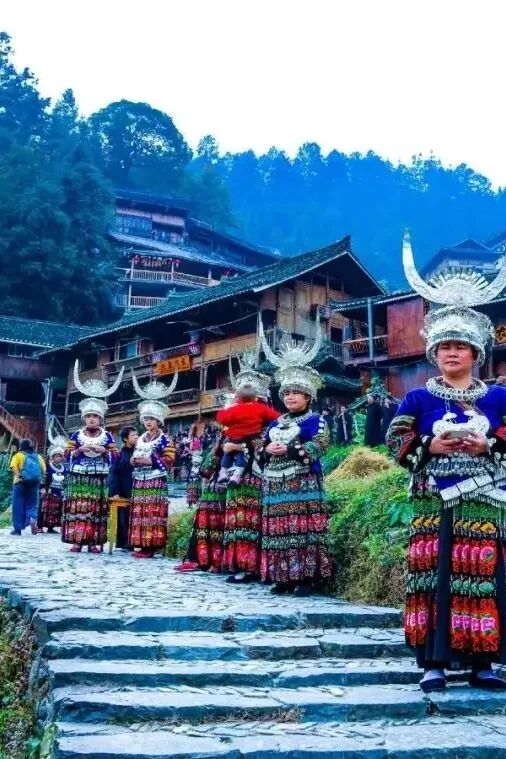 下午苗族同胞们分散回到自己的村寨,我们也离开雷山县,前往用美丽回答一切的【西江千户苗寨】傍晚时分,大家可以上观景台拍摄西江最美全景,看漫天的星星洒落在雷公山头。或自行前往位于苗寨中央的表演场(需要购票进入),观看苗家儿女的歌舞盛宴,或河边清茶小酌、嘎歌古道漫步、“风雨桥”上小憩,留一个空闲的时间,让自己醉在这里。晚上,在西江千户苗寨入住。