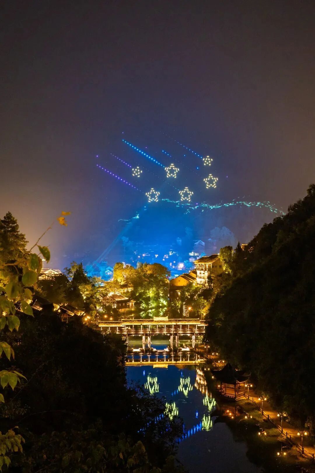 竹篾腾空而起你猜,好运花落谁家?“忽闻岸上踏歌声”你听,廻龙岛的八方宴已然开场灯火渐盛你看 ,“像是走进了千与千寻里的世界”银河坠进万点金花间水火之歌 光影盛宴正轮番上演篝火燃起 聚拢江岸围出的是家国圆满