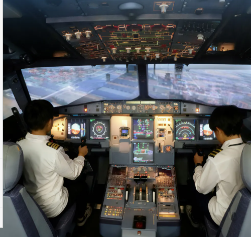 飞行员训练的模拟飞行舱是按照真实飞机驾驶舱1:1比例打造,高度还原每一个细节。