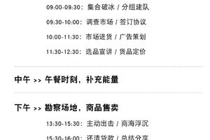 整个活动的高潮—与人打交道,无论是问路还是售卖,面对来往的陌生人如何洞察商机,寻找目标客户?如何挑战自我,跨出勇敢第一步?如何组织售卖话术,完表达自