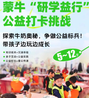 蒙牛公益持续助力青少年素质素养全面发展,我们特别推出“研学益行”公益实践活动。让孩子们在探索中学习知识,用行动传递可持续发展理念!
