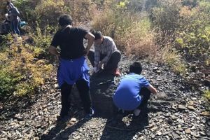 抵达后博物馆老师拿起地质锤,再次实地给大家讲解如何使用地质锤,以及注意事项!