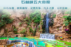 石林峡中的石、峡、水、峰、林五大特点构成了独特的景观又各具千秋。赏北国石林、观九天飞瀑、游峡谷险峰、寻石林三绝是石林峡四大浏览特色。这里的石林高峻陡峭、片片根根直立,巨石、奇石遍布谷中,整个峡谷林木郁郁葱葱,奇松怪柏苍翠挺拔,幽长的峡谷清寂秀丽,九瀑十八潭点缀其中,如一幅惟妙惟肖的天然画卷,颇具北方的壮美气势,又显江南的秀丽多姿。
