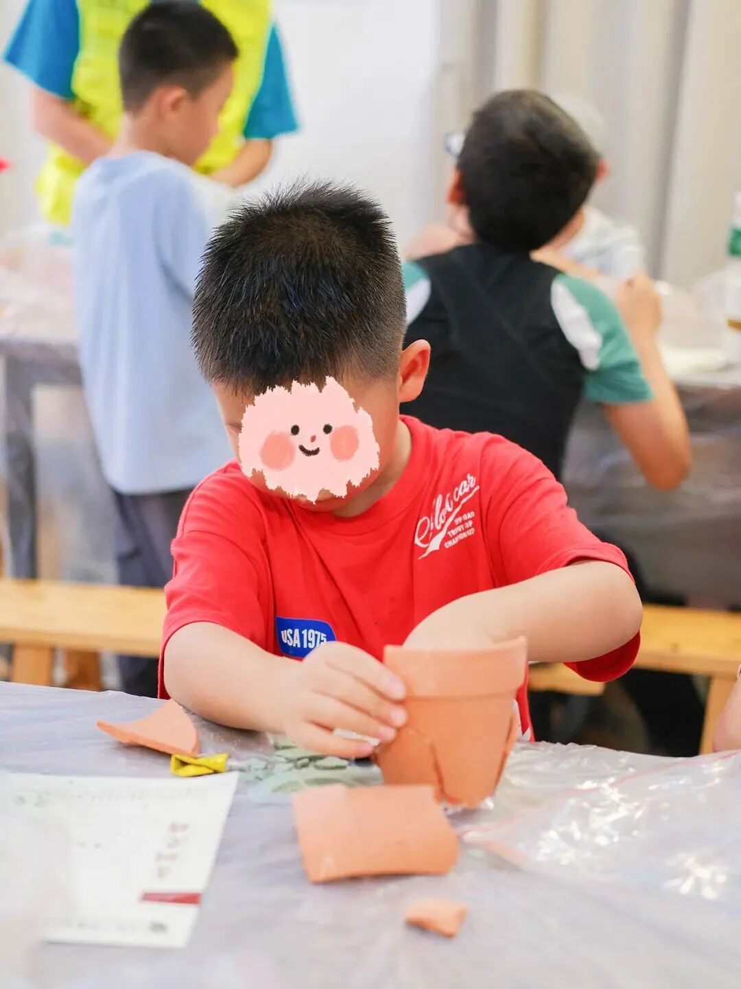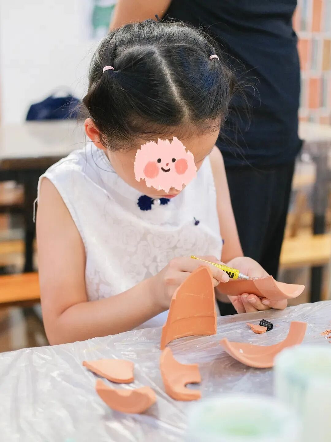 随后,带领孩子们【学习文物修复】的工作。文物被挖掘出土的时候往往都是不完整的 ,而是以碎片的形式被挖掘出来,于是文物工作者有一套巨大复杂的修复工作,通过缜密的修复工作,复原文物最初的样貌,呈现在我们的面前。