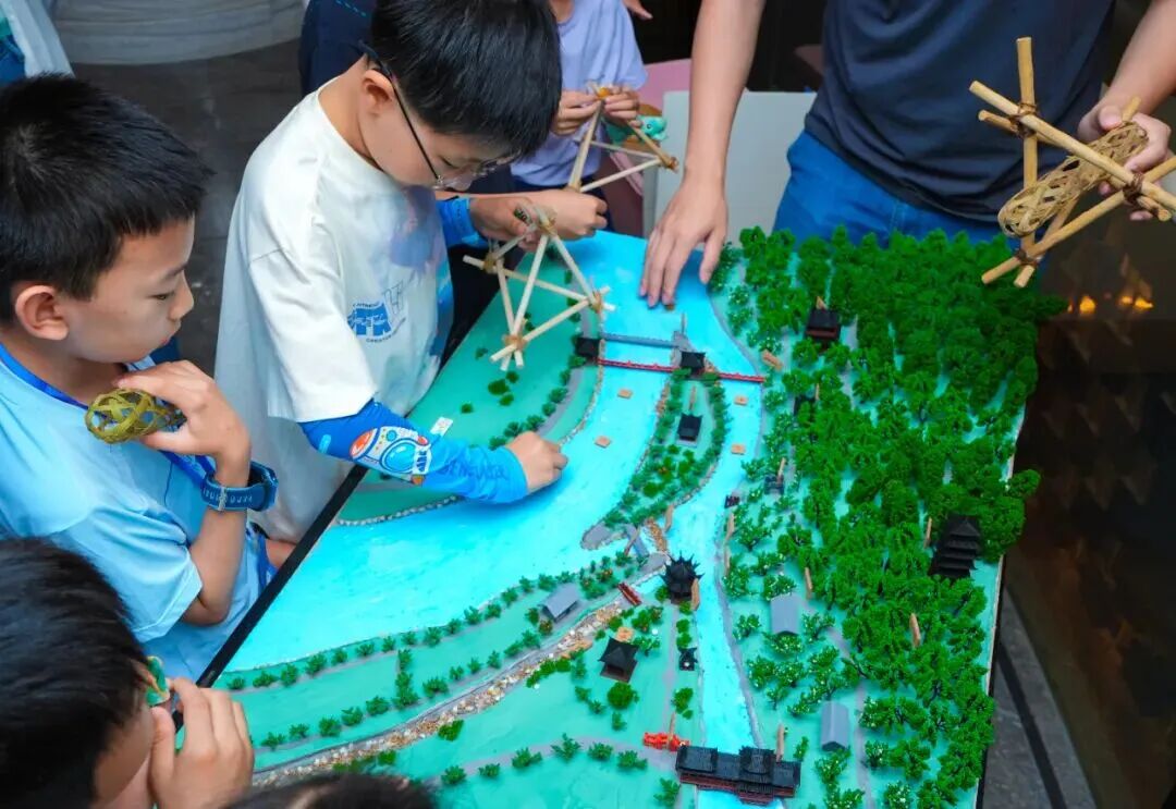 带领小朋友们,一起动手体验制作治水工具-杩槎,并把工具带到都江堰水利工程现场做实验,进一步了解治水工具在真实场景的运用。