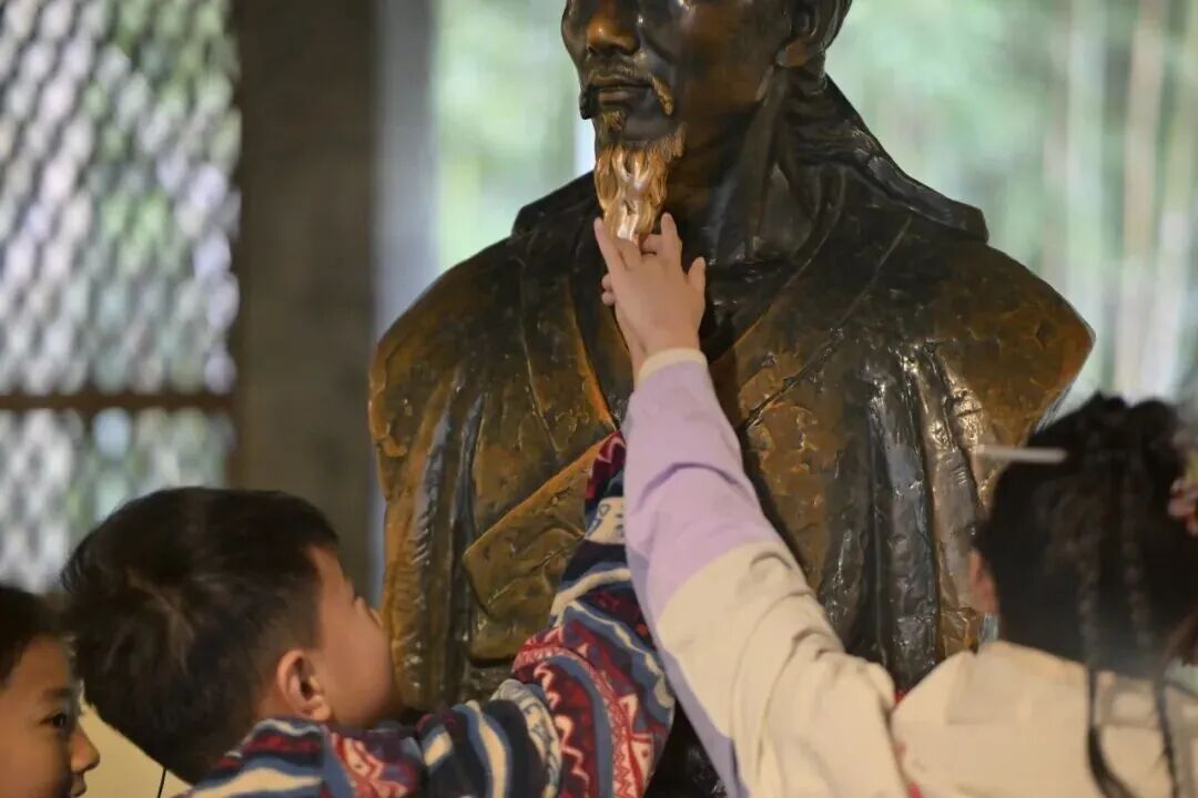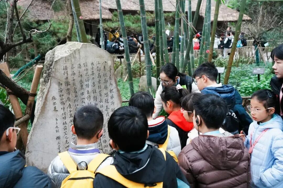 午饭后,到「杜甫草堂」,跟随讲解老师,探访诗史堂、柴门、工部祠、茅屋故居等,深入了解诗圣杜甫的足迹,感受历史沉淀,将课本中的《绝句》与草堂实景结合。