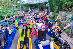 14.30 前往十渡山地网红小滑车游玩我们乘坐摆渡车来到十渡高山山地滑车起点,领取安全帽和护具,经过培训后开始最嗨最狂野的高山滑车活动,超长2000米路程,山道间风驰电掣、美景在侧、有种把游戏中跑跑卡丁车搬到现实的感觉。