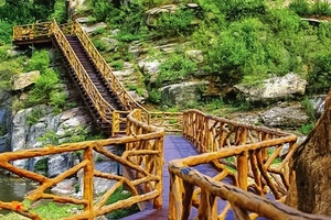 1、神堂峪栈道 :栈道总长度7000米,是华北地区最长的山水栈道。一步一景,一步一叹,专为APEC会议而投巨资修建。一边呼吸着乡间的清新空气,一边聆听着溪水和鸟鸣,又是另一种体验。