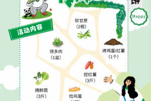甘蔗2根、挖红薯3斤/摘鲜蔬3斤/捡鸡蛋9个三选一、多肉1颗,土窑烤鸡蛋1个/烤红薯1个任选一项,喂养小动物、公益时长2小时