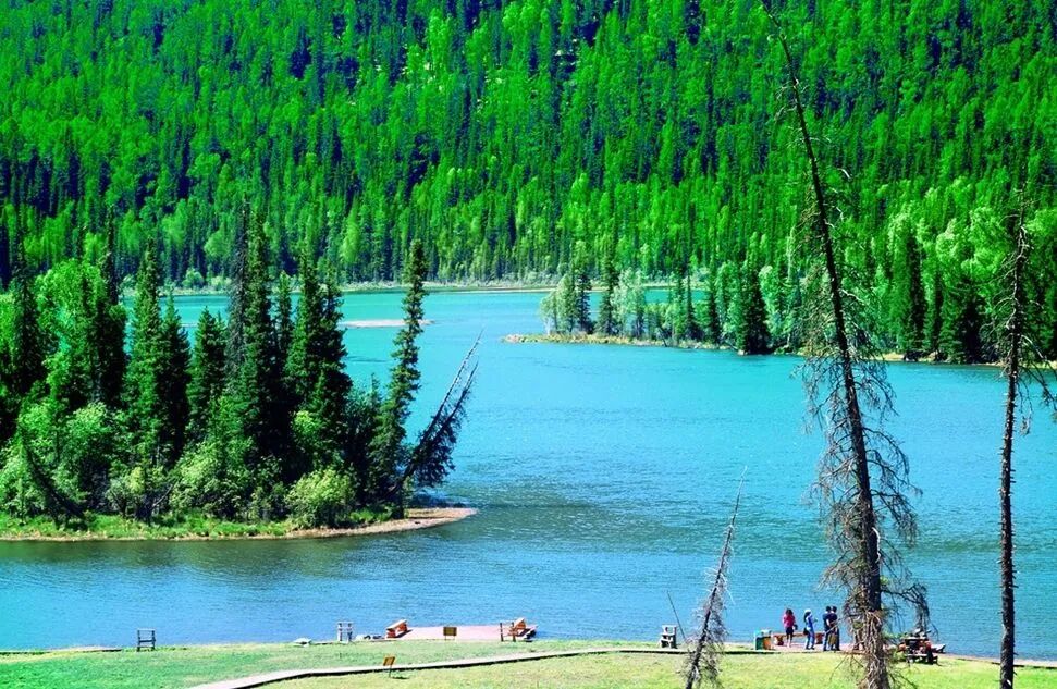 早餐后,约9:00集合,我们就开始本次行程的重点:游览喀纳斯三湾。首先我们去乘换中心坐前往贾登峪方向的区间车,一路欣赏高山花卉、草原风光。