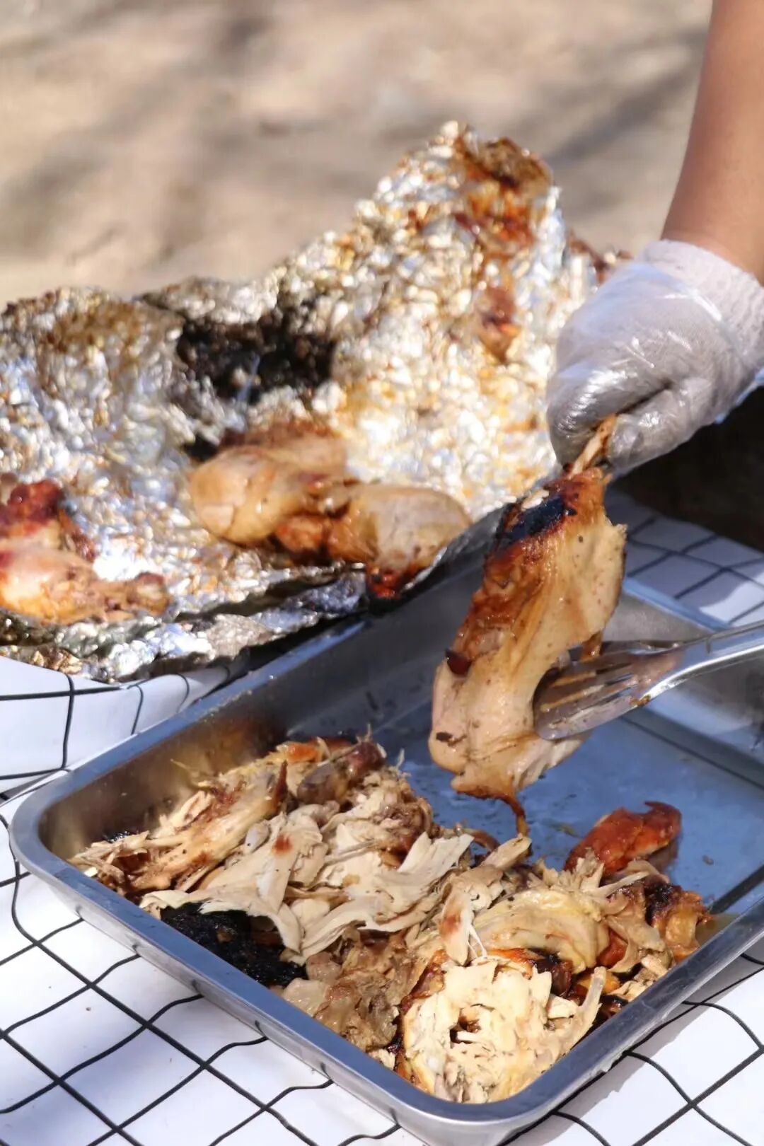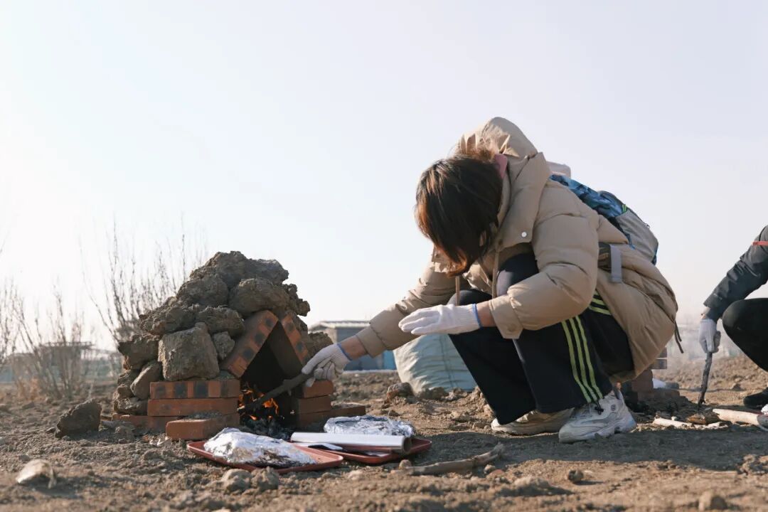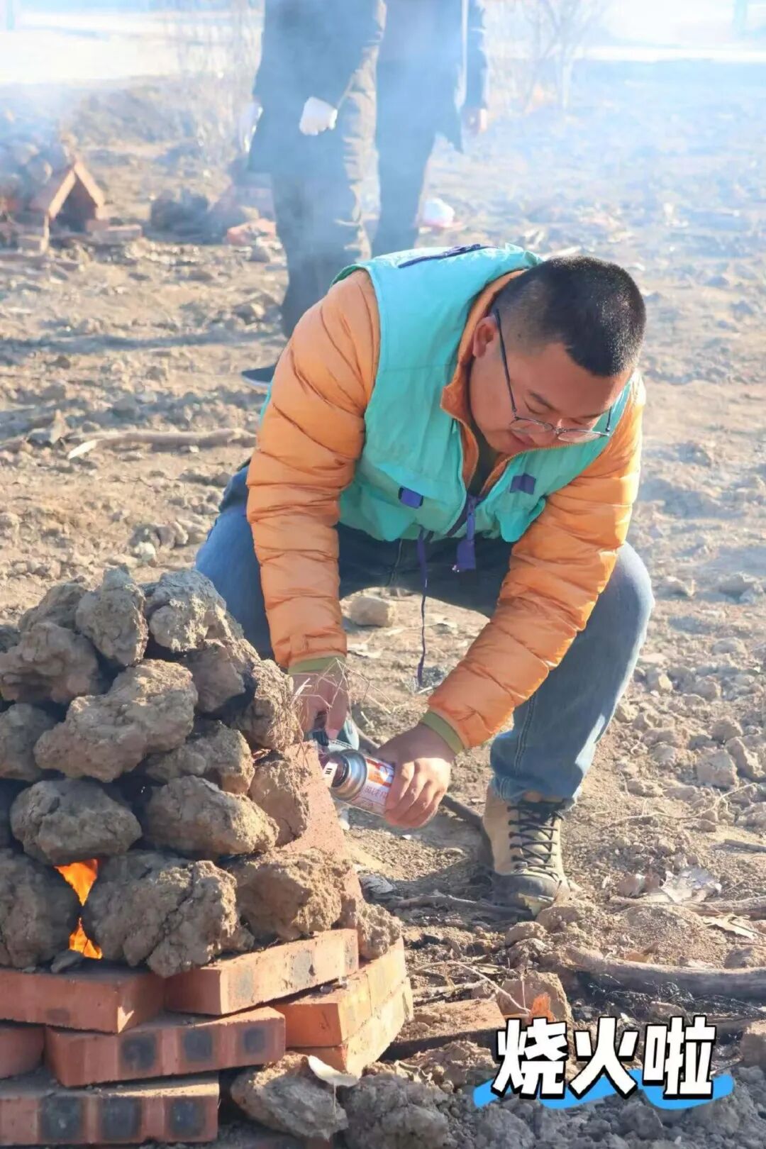 点火,烧到窑壁发白发亮。把腌制好的农场走地鸡裹上锡纸,推进窑里,封土,等。