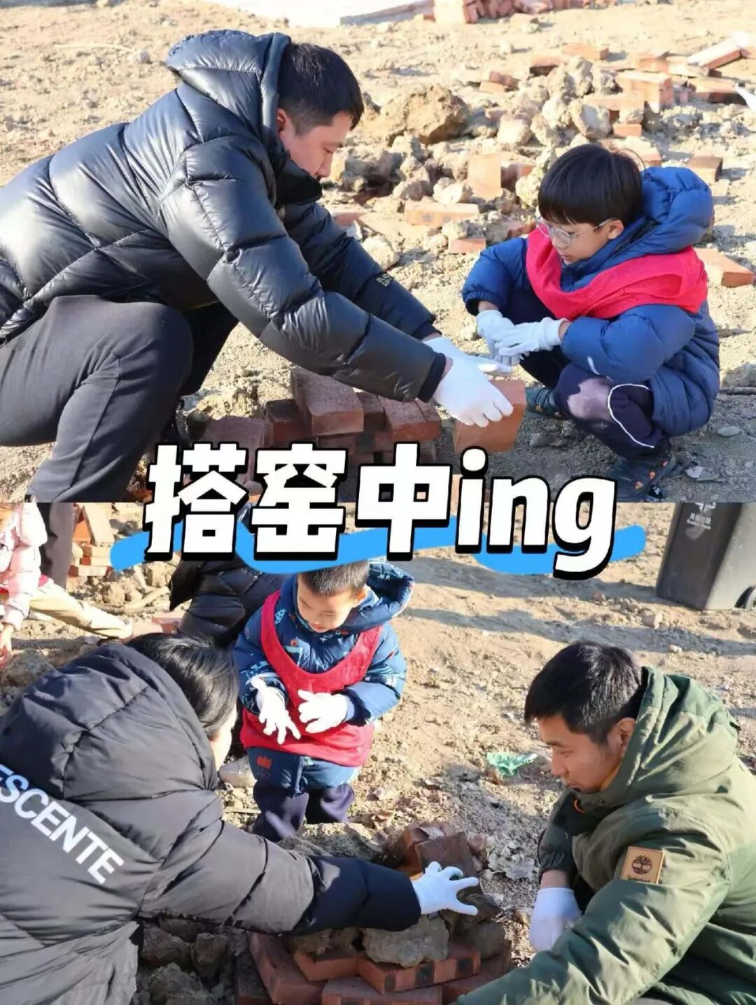 爸爸负责搭结构,孩子负责捡碎土填缝。窑体要有通风口,要有弧度,要稳——倒了就要重来。