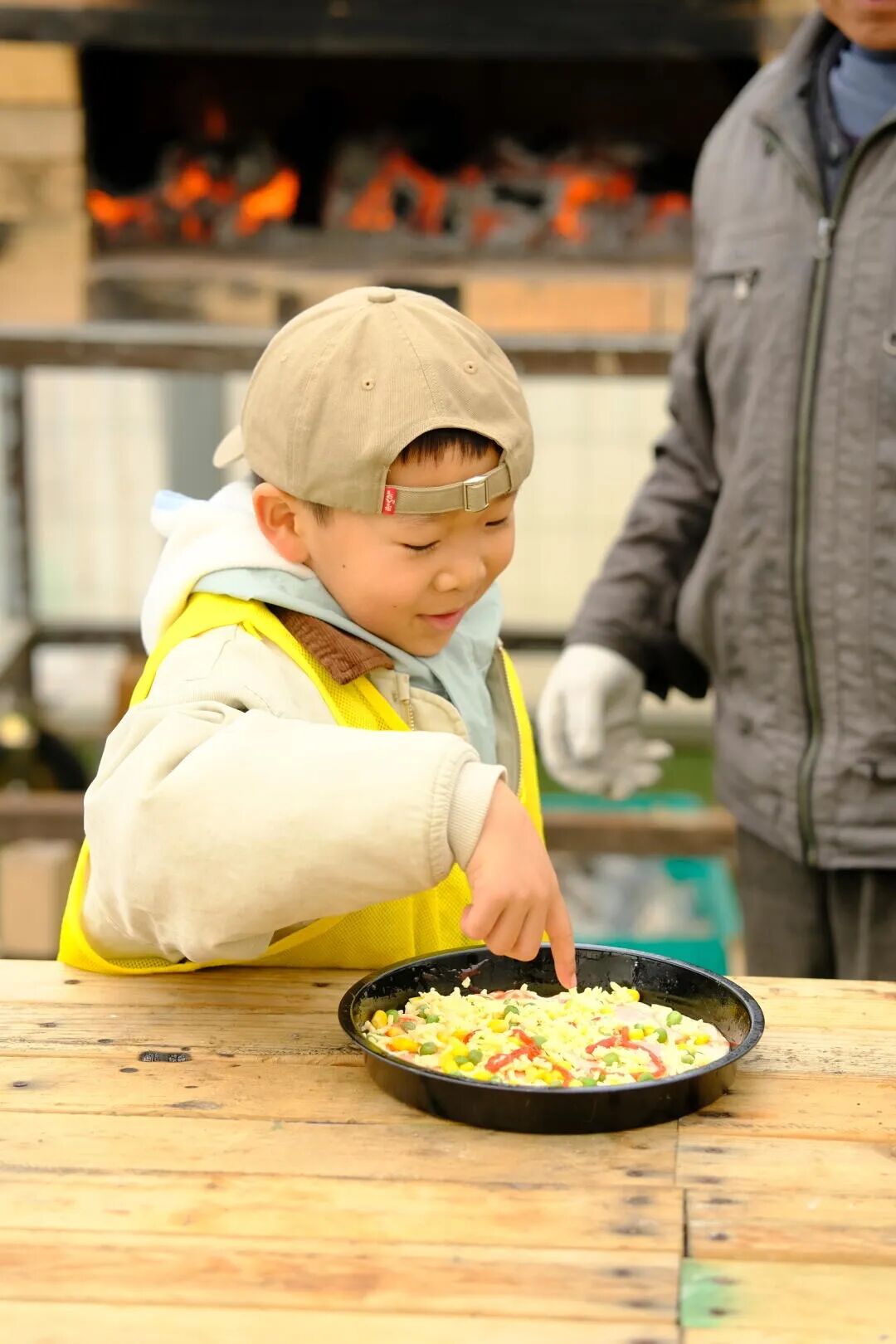 面团是提前发酵好的,摸起来软软的,有麦香。孩子们在稻田边的长桌上,自己揉、自己擀,做成圆形、爱心形,或者——怪兽形。