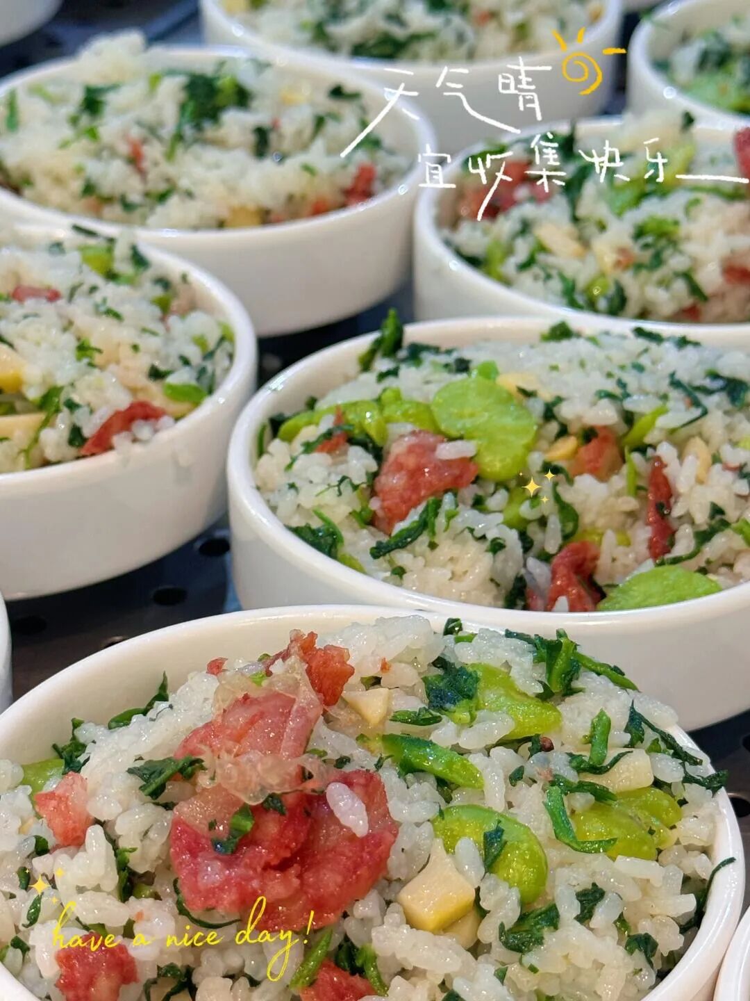 大米、咸肉、春笋、蚕豆,是这锅饭的“四大金刚”。如果你们愿意,还可以去野菜区寻一些荠菜或野葱,扔进锅里一起焖。