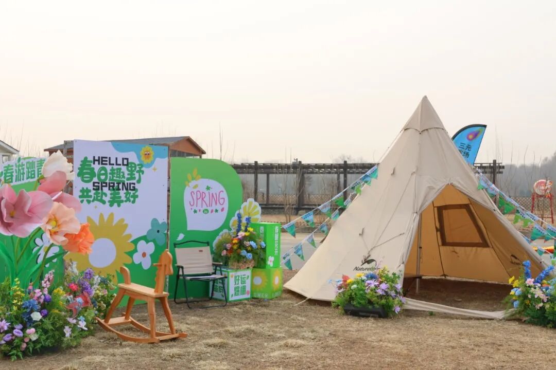 玩累了,去田埂边挖野菜想躺平,在稻田旁搭帐篷套圈、丢沙包,猜谜换礼物——