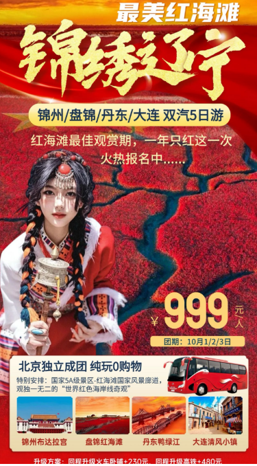 锦绣辽宁丨锦州+盘锦+丹东+大连 <双汽5日游>