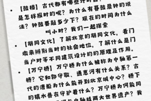 探访元代古桥万宁桥,了解运河与漕运历史;寻找胡同里的文化小秘密。