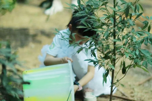 前往专属植树区,挖坑、放苗、填土、浇水、修剪…