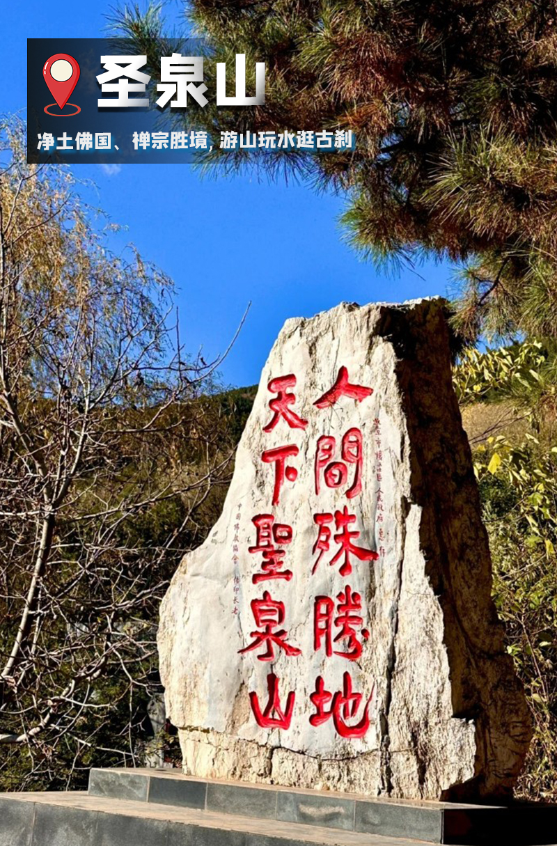 北京圣泉山旅游风景区距怀柔城区6公里,东临千年古刹红螺寺,西接万里长城慕田峪,占地总面积5平方公里,背靠燕山,宏阔壮美,前拥怀沙河,风光秀丽。圣泉山集自然、人文景观和佛教、历史文化于一体,是一个净土佛国、禅宗胜境。