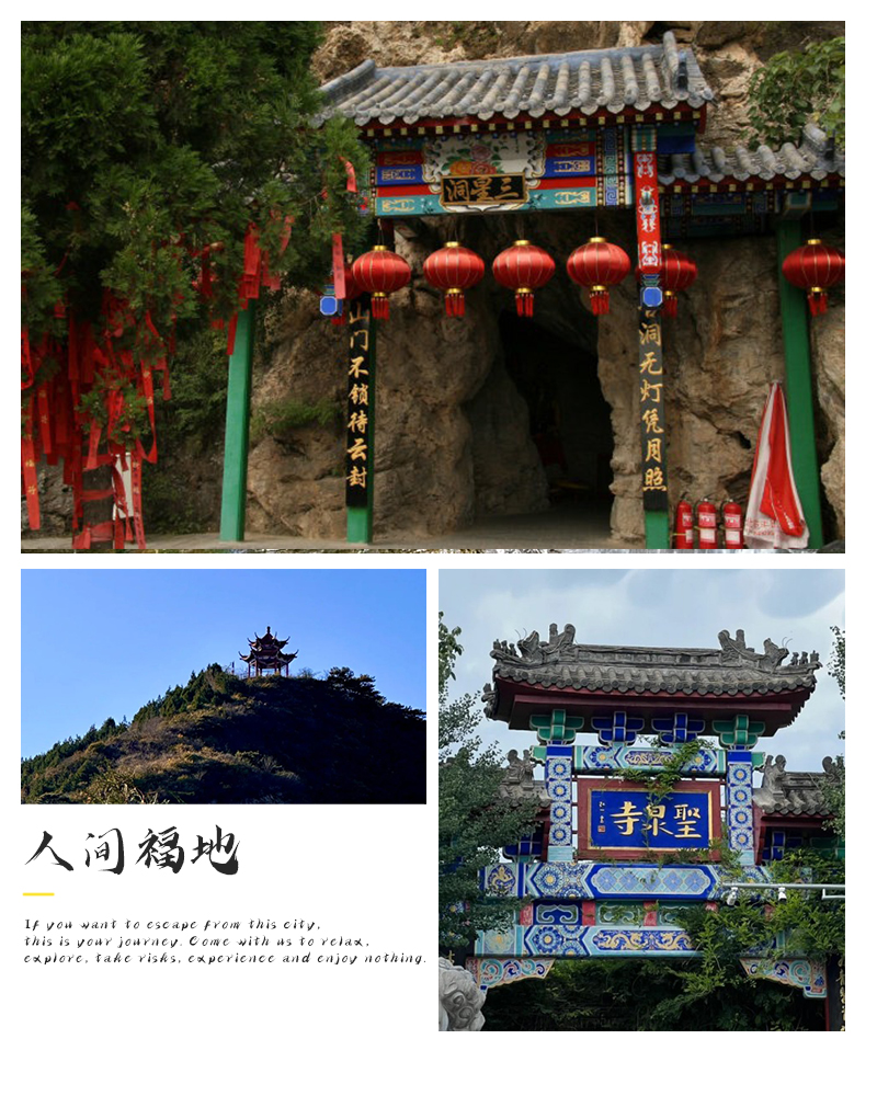 这里是人间福地、佛教胜境,山雄健、峰巍峨、树滴翠、水缠绵、寺沧桑、境悠然,大家一起爬山,下山还可以坐滑道哟,很刺激的。