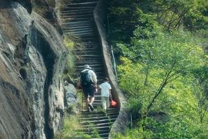 大家跟着领队的步伐,踏上了石板的台阶,正式开始【徽杭古道】徒步,明代兵部尚书胡宗宪、红顶商人胡雪岩、一代文豪胡适、著名徽商胡沇源等许多名人志士就是经这走出大山,成名天下。一路沿着崇山峻岭,古道盘旋,这条路很美,青山绿水,云雾萦绕,自然风光绝佳。无论是春花,还是秋叶,都在鸟鸣溪语风声中尽情铺陈一种美丽、一种活力,行走其间,一路都令人赏心悦目。