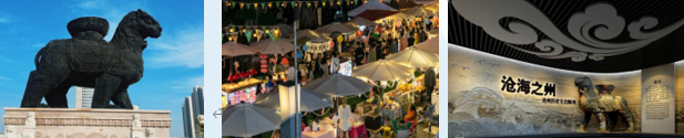 10.00 游览狮城广场是沧州市运河区的城市文化地标,毗邻迎宾大道,占地约 57 亩,以标志性建筑"新沧州铁狮"为核心景观。该铁狮 2009-2011 年铸造,重 120吨,体积为原铁狮的 1.32 倍,采用一次性浇铸工艺并补全了历史缺失的尾部与下颌。