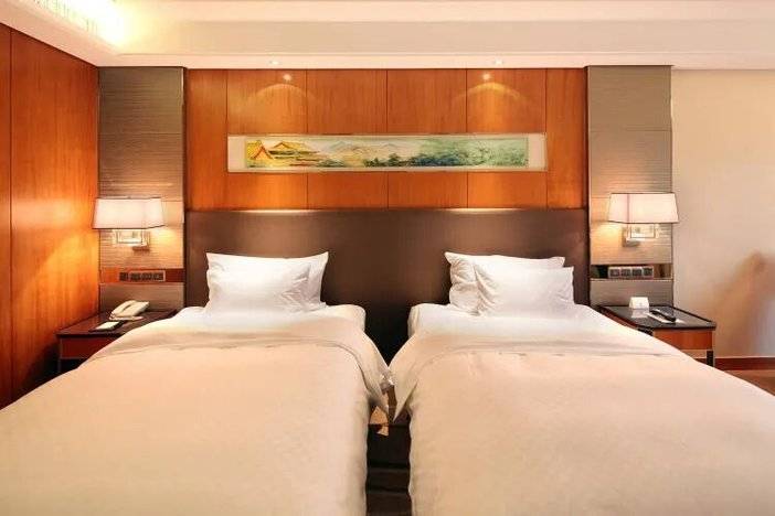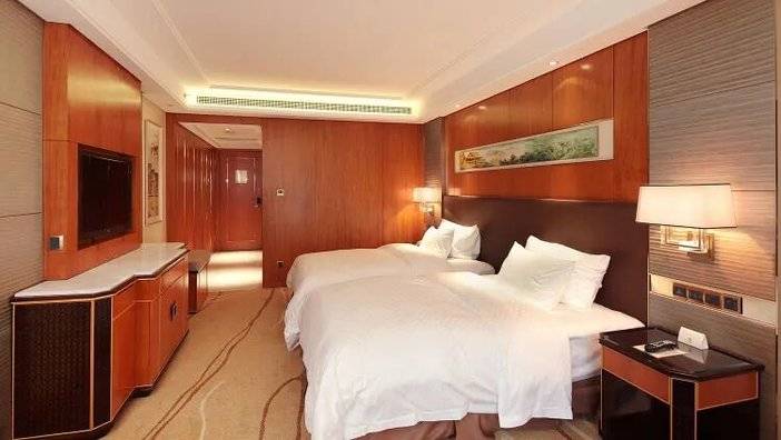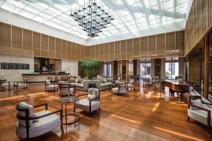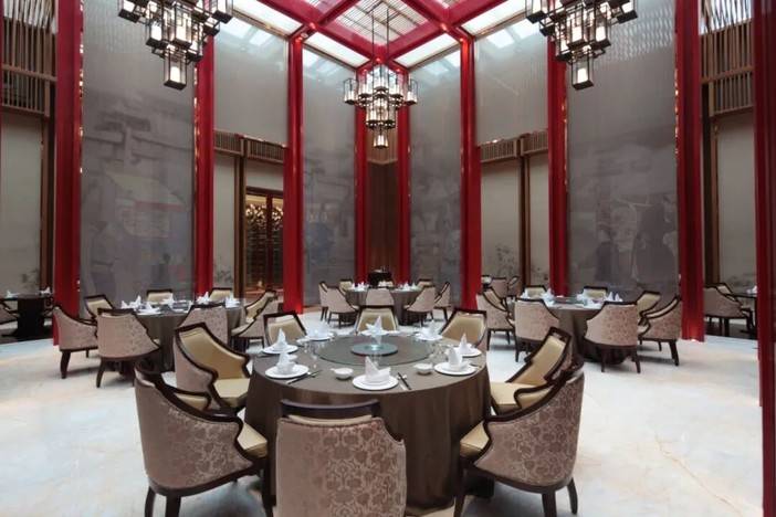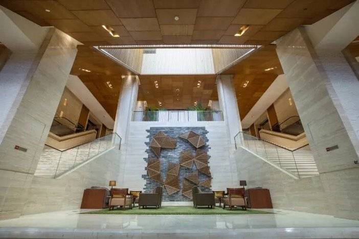 进入酒店大厅,映入眼帘的是金碧辉煌的装修,诺大的中式壁画、几何装饰物相搭,既有长城古朴长城的历史感,又不显得严肃呆板。