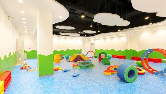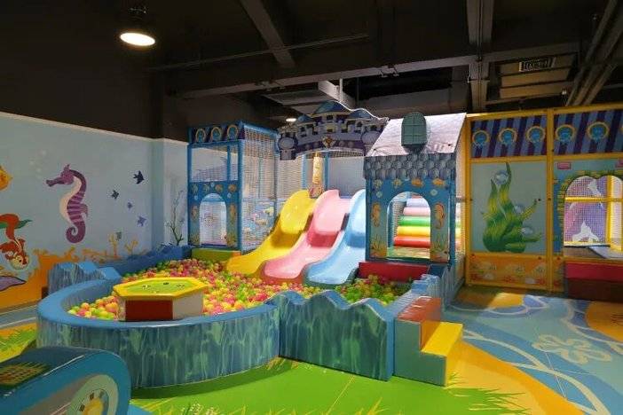 如果你的孩子太小,建议到二层,这里有专门针对小宝宝设置的儿童区,旋转小鱼、海洋球、感应室等。