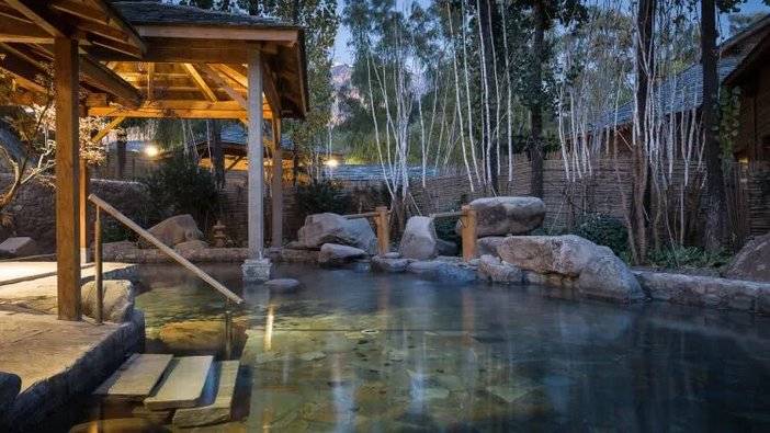 在汤泉池里或泡脚或闲谈,感受放松惬意,这是一种不错的养生方式。景区内有部分汤泉,是可以边泡边远眺司马台长城,泡汤赏景两不误~