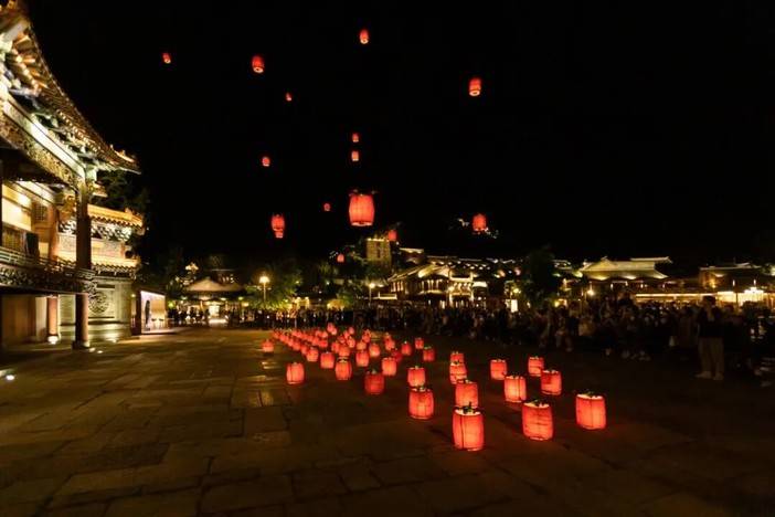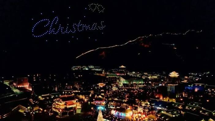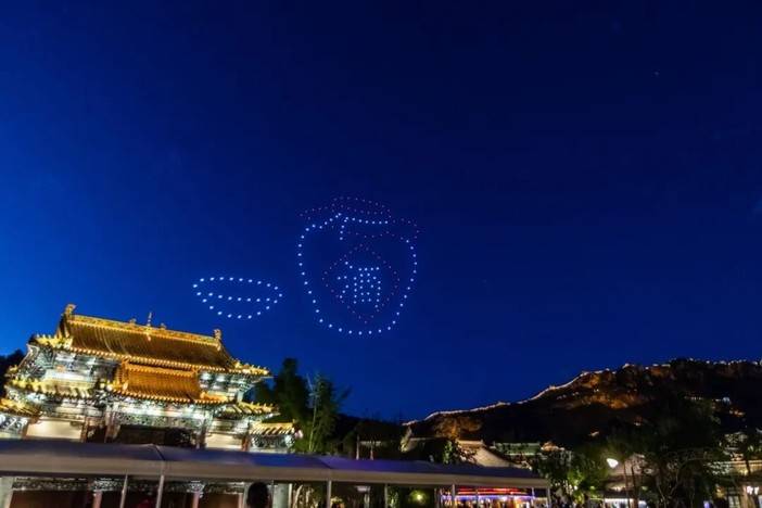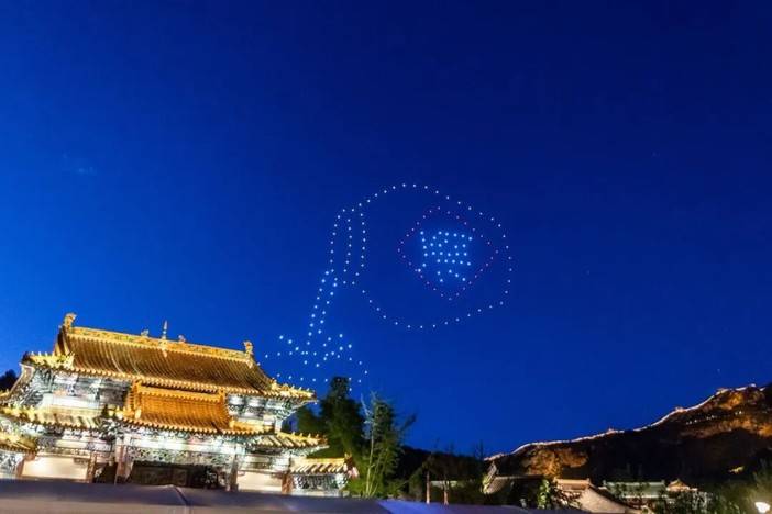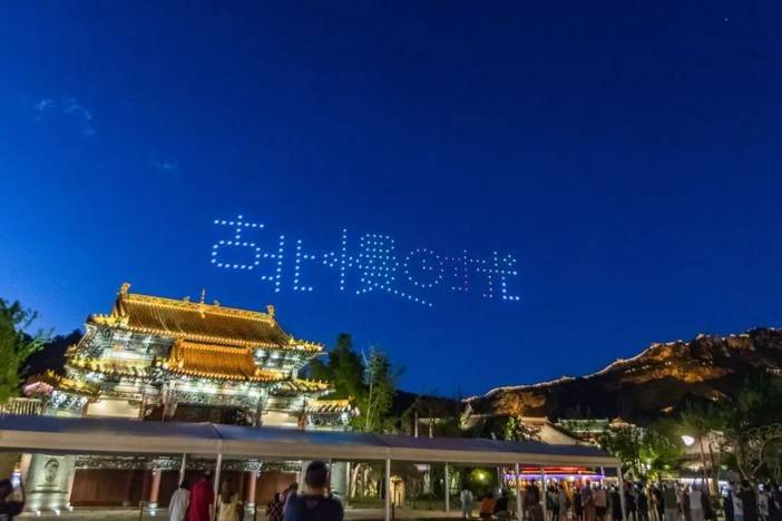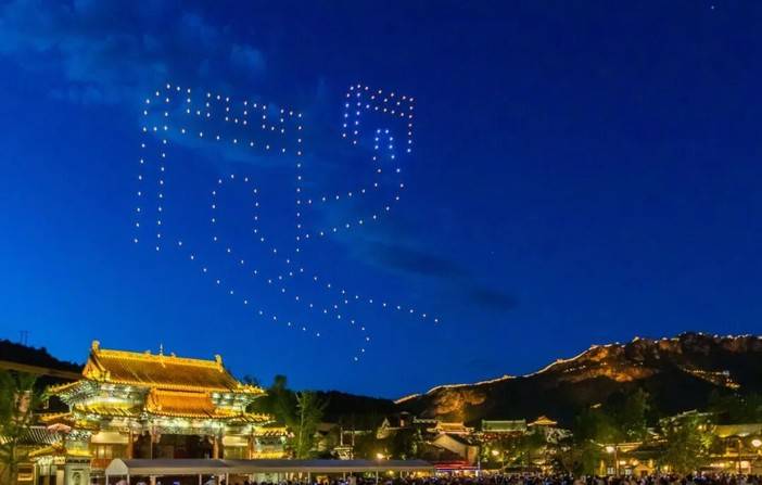 百余架无人机孔明灯缓缓升起,在浩瀚夜空中绽放,或随风远去或变化万千,与远处灯光璀璨的司马台长城遥相呼应,浪漫又震撼。