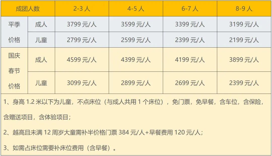 成人:3699元/人,儿童:2299元/人