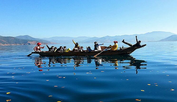 傍晚欣赏泸沽湖醉美日落美景。晚餐后参加篝火晚会,与泸沽湖畔身着盛装的摩梭小阿哥、小阿妹点起篝火,手拉手跳起欢快的舞蹈,与多情的阿哥、阿妹歌唱着泸沽湖畔的天籁之音。