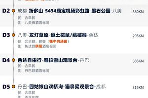 4、门票:四姑娘山双桥沟观光车70元/人(必须),墨石公园观光车20元/人(必须),色达预约48元/人,报名后请根据自己的游玩日期自行预约;