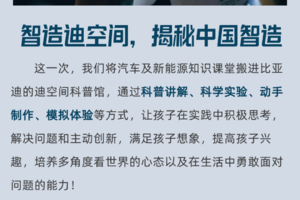 【智造比亚迪】~沉浸式科普体验+DIY太阳能汽车+交通安全教育+感受工程师视角聚焦新能源......