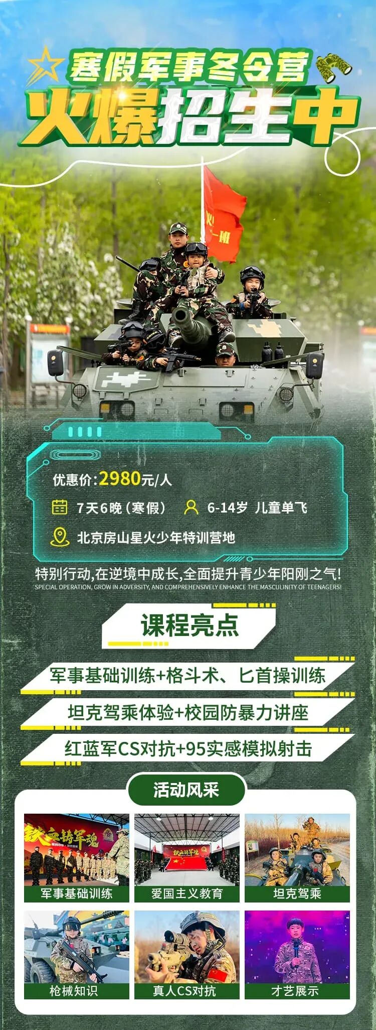 7天6晚!北京寒假军事冬令营,培养自理能力+军事装备体验+励志感恩教育!