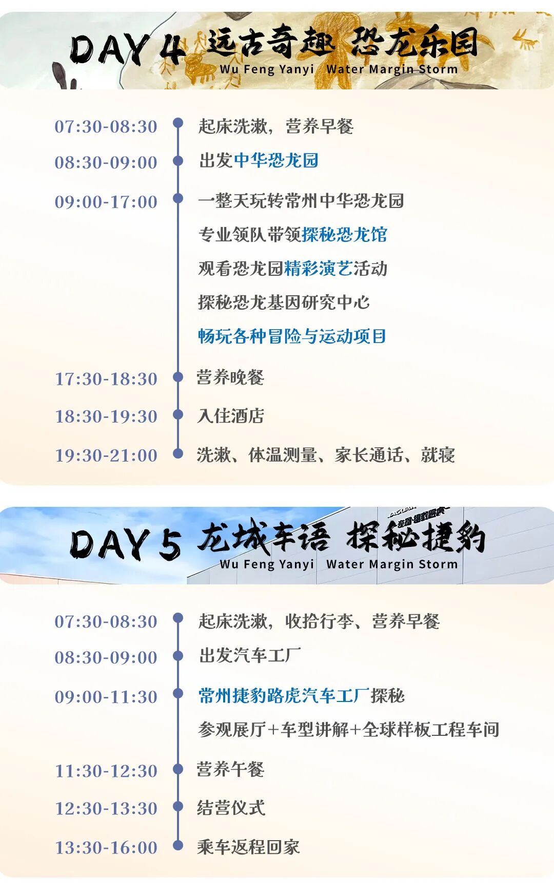 2. 用餐:全程4早8正餐,餐标50元/人,其中常州恐龙园中餐自理,老师会带领前往餐厅,自行选择套餐。