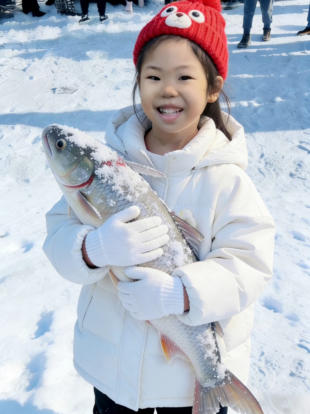 跟着世代传承的渔把头,沉浸式解锁 “识冰、凿洞、下网、起鱼” 的完整古法流程 —— 近距离观摩匠人精准定位冰眼、娴熟凿冰的技艺,共同见证 “冰湖腾鱼” 的震撼瞬间:肥美的鲜鱼在零下气温中跃出冰洞,银鳞闪烁间蒸腾起阵阵水汽,瞬间点燃全家热情。
