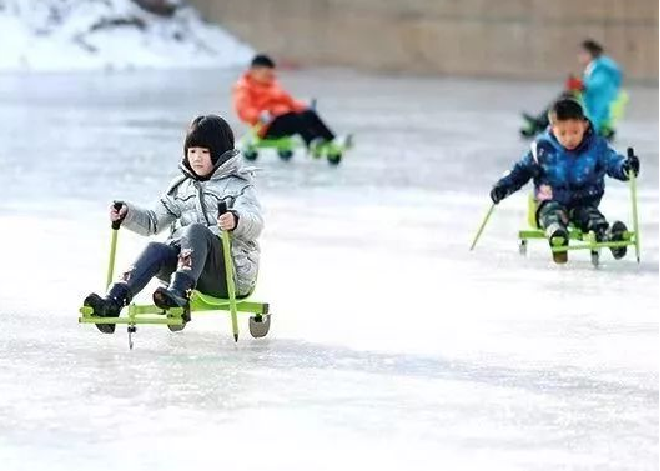 下午体验冰上项目(极速雪滑道、滑冰车、冰上陀螺等)+ 冰面探索;