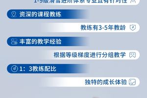 启动滑雪学院原班师资团队,【踏雪寻春】滑雪学院教练多年从事儿童滑雪教学,对6-14岁儿童有丰富的滑雪教学经验。