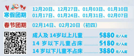 14岁以下儿童不占床 3880元/人