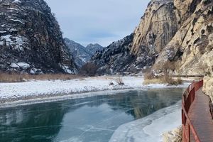 冰封了的白河,有如一条蜿蜒的白龙。两岸绵绵的山峰耸峙,有如古人的泼墨山水画,有一种古朴的宁静与肃美,不愧被称为是”北京的雅鲁藏布大峡谷“。