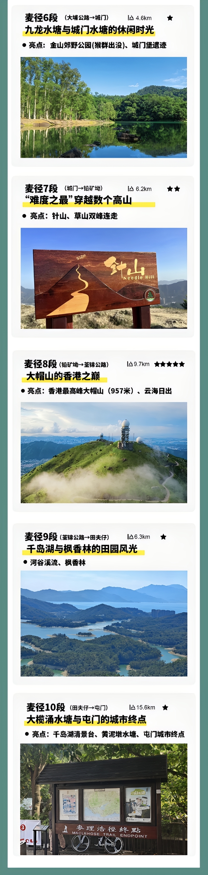 第四段是麦径的“山脊线之王”,马鞍山的360°全景视野让人震撼,茅坪古道的石板路充满历史感,黄牛山的草坡适合拍照打卡。