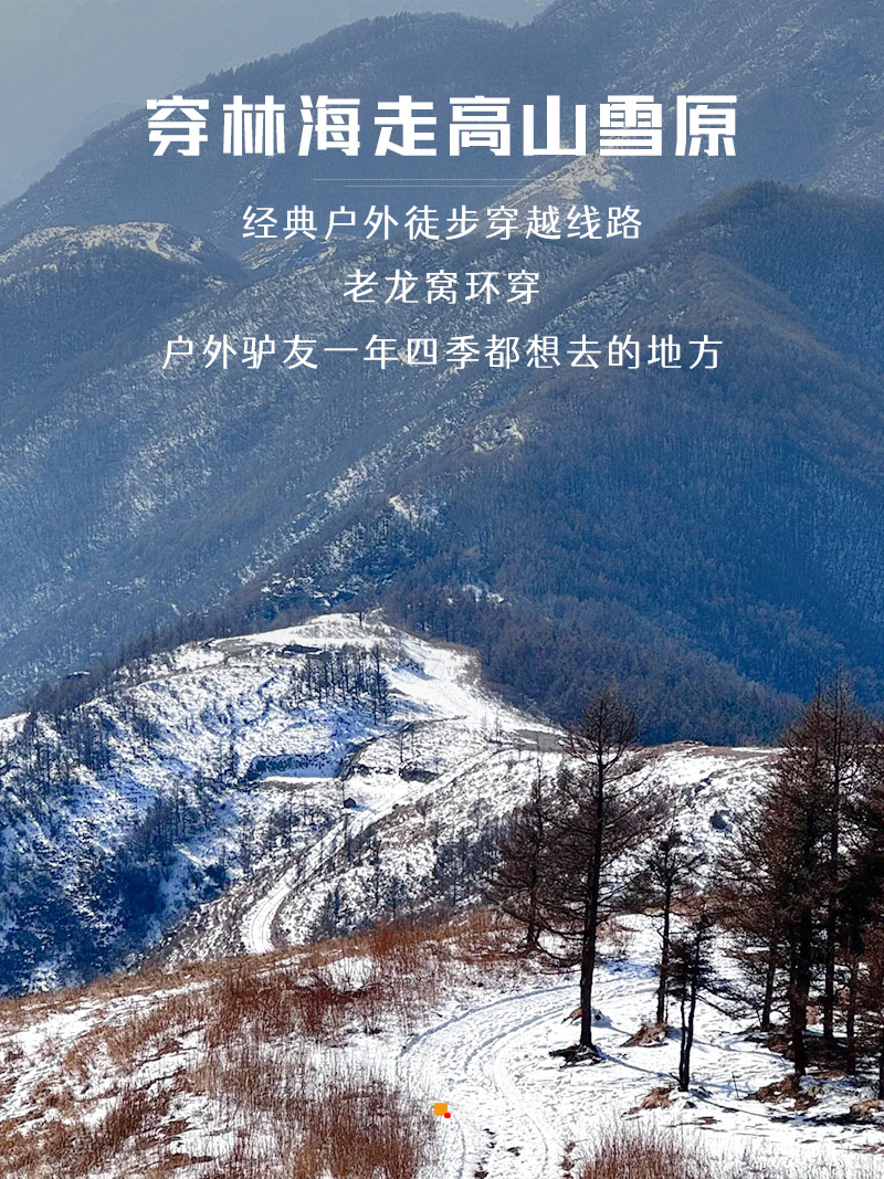 门头沟老龙窝位于北京市门头沟和房山交界处,属于百花山自然保护区的一部分,海拔1649米,山顶标志是铁三脚架。该条线路总体上难度中上,途经大面积原始次森林,以白桦林和落叶松为主,山间潮湿气流遇冷凝结,为针叶林和高山灌木披上厚重的雾凇(树挂),绵长山脊线,在积雪覆盖下化为一条气势磅礴的“银龙”。