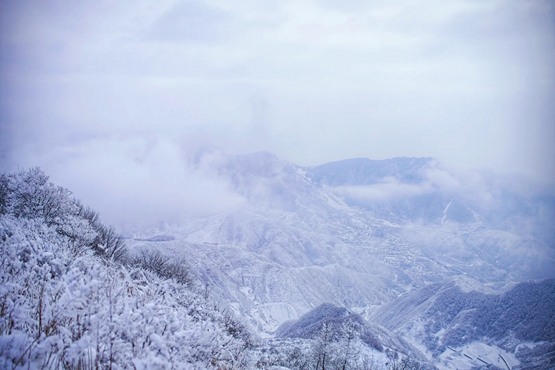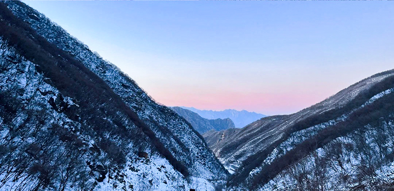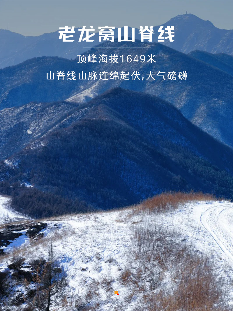 老龙窝在房山区和门头沟区交界处。东距门头沟大 峪约32公里。海拔1649米,属北京西山,是清水河与大石河的分水岭。当寒流南下,京西山脉褪去斑斓,披上银装,海拔1649米的老龙窝便展现出它最纯粹、最静谧,也最威严的一面。老龙窝标志性的绵长山脊线,在积雪覆盖下化为一条气势磅礴的“银龙”,在湛蓝天空下勾勒出震撼的天际线。徒步其上,宛如行走在天地脊梁。山间潮湿气流遇冷凝结,为针叶林和高山灌木披上厚重的雾凇(树挂)。阳光之下,冰晶闪烁,宛如梦幻的“冰雪森林”,是摄影的绝佳题材。