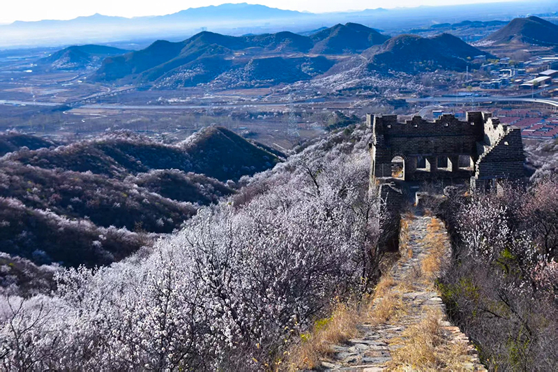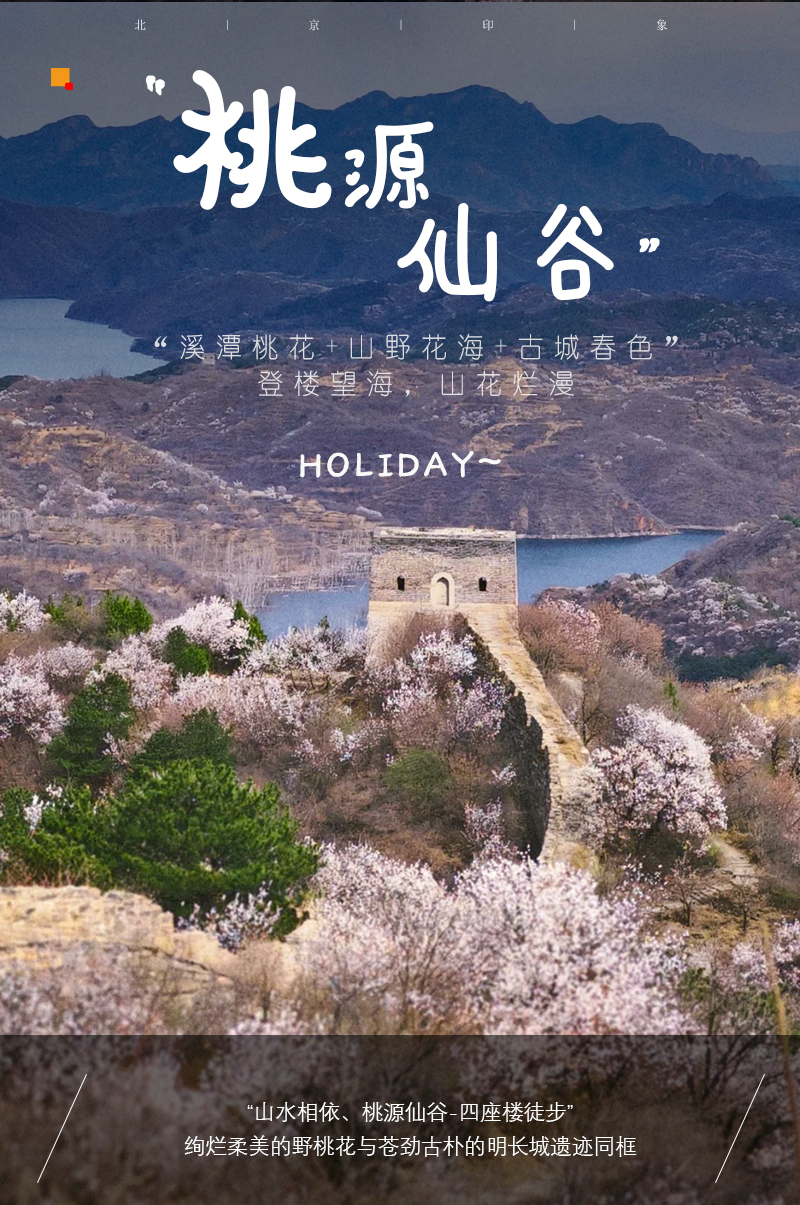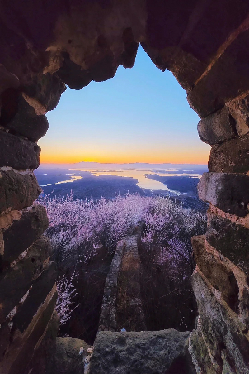 桃源仙谷-四座楼长城徒步,轻轻松松拍氛围感大片,赏花看水一网打尽,景色丰富,视野开阔,一步一景,近可赏山桃,远可眺望密云水库,从头到尾都好拍的一条路线,全程九公里,爬升下降均六百多。