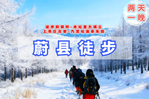 - 16:00|到达徒步终结束后,跟随领队前往九宫峪泡温泉需要自带泳衣,适时前往蔚县酒店安排住宿,自行游玩寻找美食;