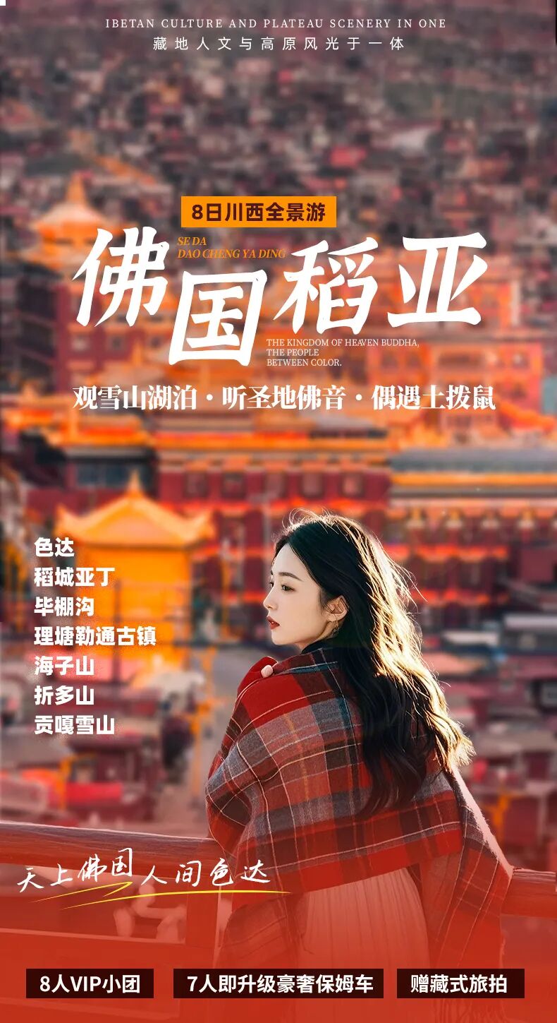 色达稻城亚丁+毕棚沟+理塘·勒通古镇+海子山+折多山+贡嘎雪山8日深度游