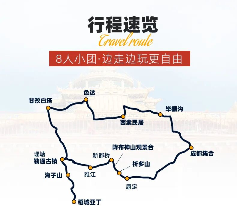 每周六成都集合,周日出发,次周六结束,节假日略有调整。