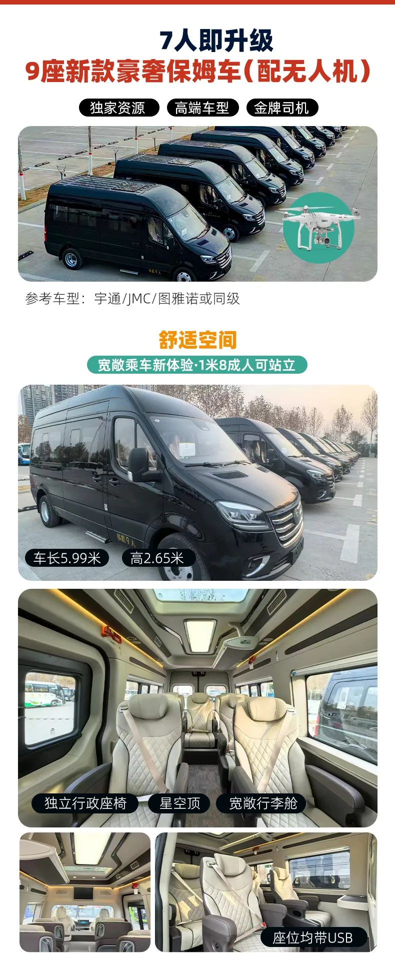 7-8位队员升级9座新款豪奢保姆车(配无人机);
